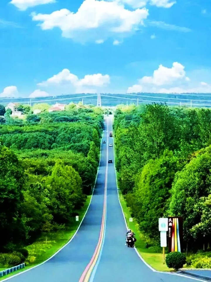 溧阳1号公路,江苏一条绝好意思的旅游景不雅通衢,全长365公里,因为路上有三色线,也被称为“彩虹公路”。