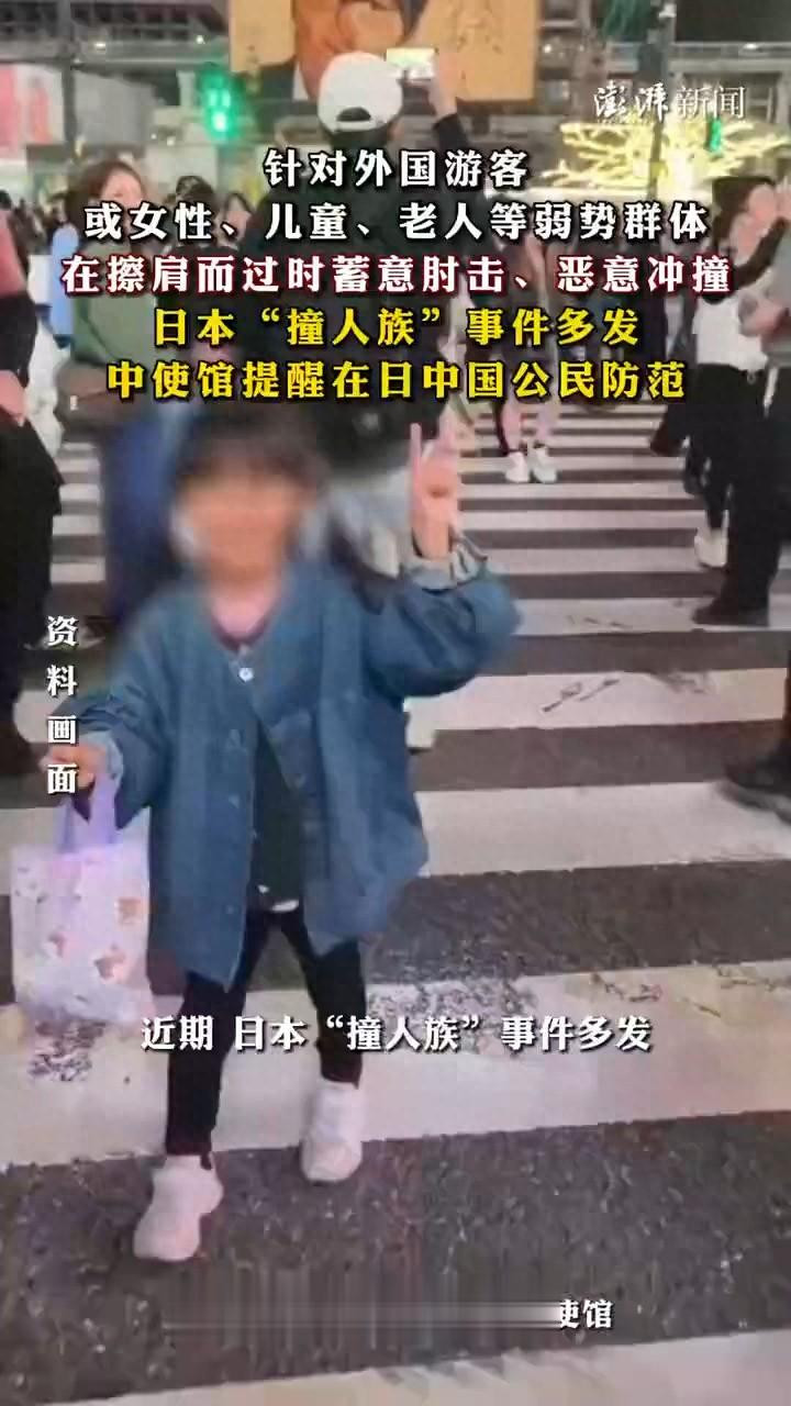 近日,日本多地出现“撞东谈主族”坏心冲撞行东谈主事件。此前,中国台湾一双母女在日本涩谷过马路时,遭别称长发女子坏心冲撞,相干视频曝光后激发烧议。3月4日,中国驻日本大使馆领导在日中国公民防卫“撞东谈主族”。当日,多位曾赴日旅游的中国搭客向极目新闻记者讲授了本身遇到“撞东谈主族”的经验。#中国搭客在日本目睹老太被壮汉撞飞##日本撞东谈主族事件多发#