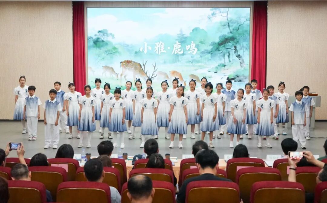 行为开始,长安镇中心小学学生登台齐唱《小雅·鹿鸣》,清亮涟漪的歌声融汇传统艺术韵味,机动展现了该校“艺慧汲引”的深厚积淀与育东谈主后果,获得现场全体嘉宾的强烈掌声。