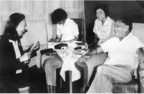 1980年,邓小平吸收法拉奇采访,右二为施燕华。