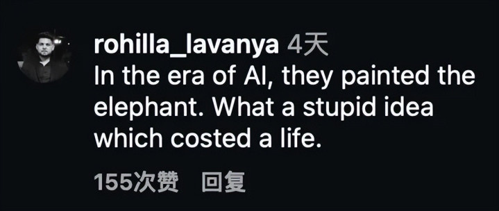 “在东说念主工智能时期,他们竟然给大象涂了颜色。何等愚蠢的主义,夺走了一条生命。”