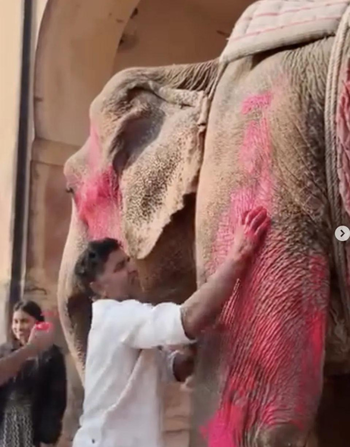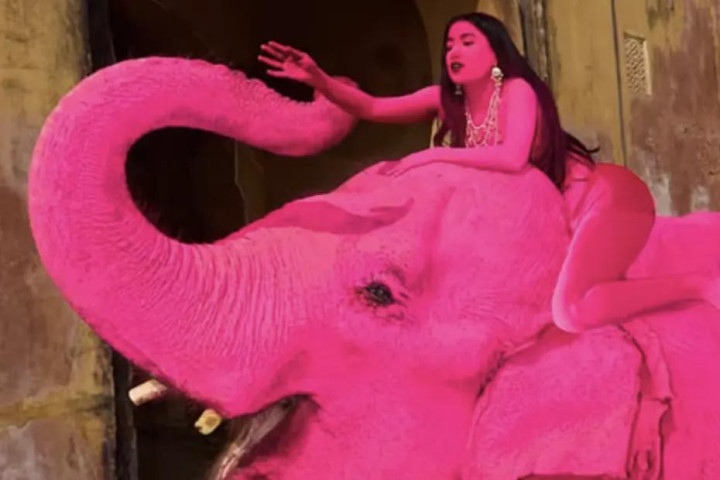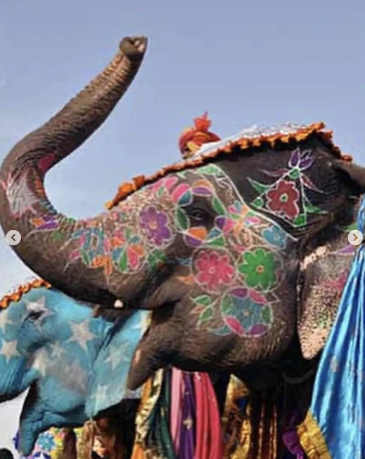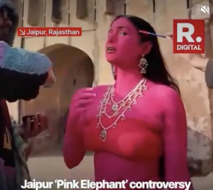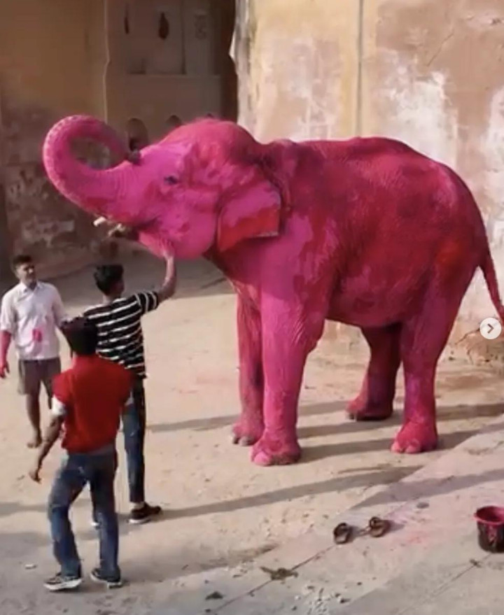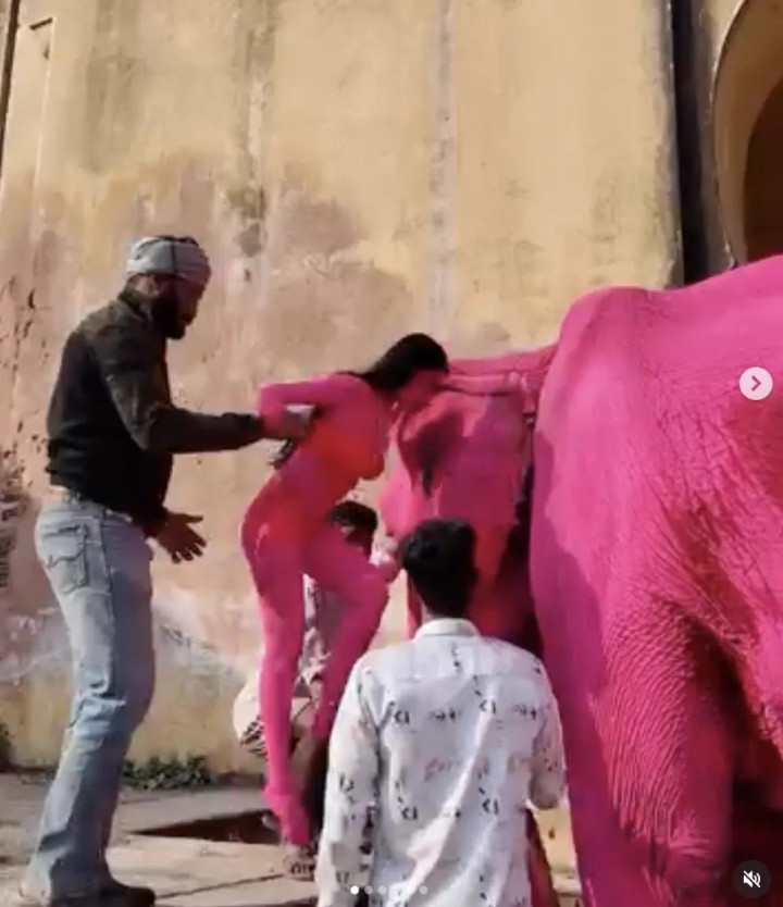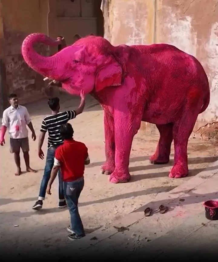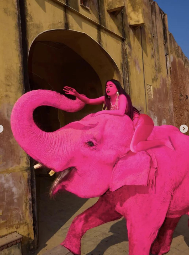 其时,在领有繁密圈养大象的印度拉贾斯坦邦斋浦尔,茱莉亚挑升找了一只大象,将其全身染成粉色,她还挑升找了别称印度腹地女模特,也将其全身涂成不异的颜色。