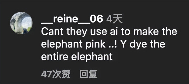 “他们难说念弗成用东说念主工智能把大象改成粉红色吗?!为什么要把整头大象齐染成粉红色!”
