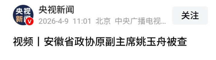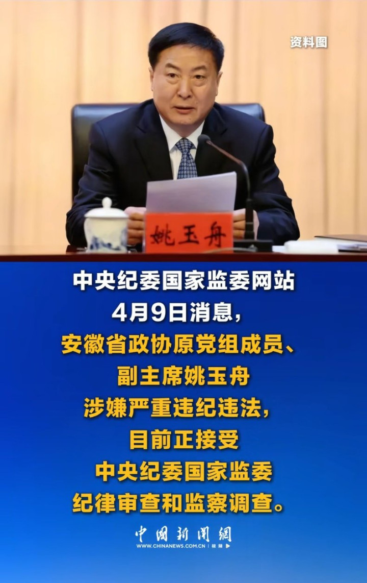 2026年4月9日,一则通报像炸雷般传开了:安徽省政协原副主席姚玉舟因涉嫌严重违规犯科,正摄取访问。