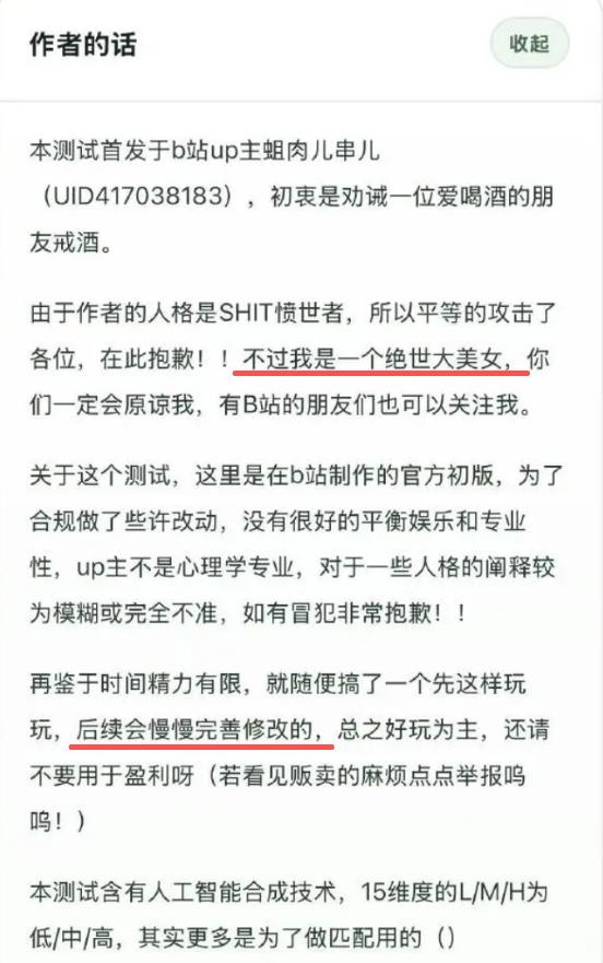 需明确,SBTI仅仅解压的打趣,并不是东说念主生的标签,更无法惩处着实的心绪困扰。