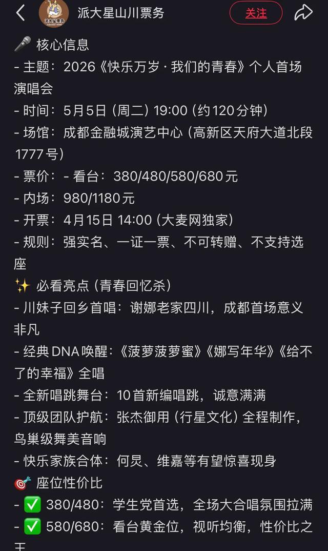 但是官方深远,谢娜成皆演唱会门票是380元—1180元不等,真钱投注平台这个订价基本上是一线专科歌手的价钱了,而谢娜这个非专科歌手以这价位出售门票,理会是有点高了。