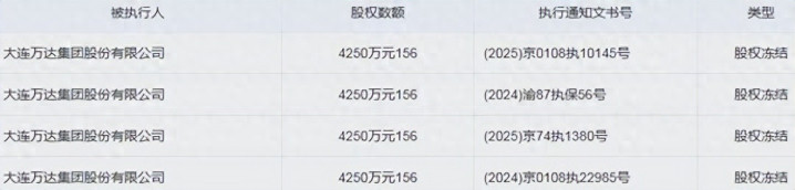 另据悉,2024年中期以来至2025年,大连万达集团所握北银消金5%股权(对应出资成本4250万元)接踵被成渝金融法院、北京金融法院等冻结,期限王人是3年。