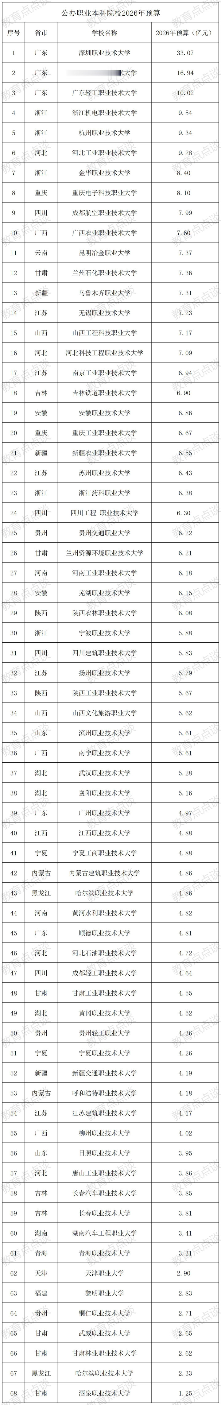 近两年来,不少高职院校升级为办事本科院校,2026年经费预算也已接续对外公布。据不扫数统计,现存三所办事本科院校2026年预算特等10亿,均来自广东,真钱投注app最高的是深圳办事期间大学,达到了33.07亿,遥遥率先其他高校,其次是深圳信息办事期间大学16.94亿、广东轻工办事期间大学10.02亿排行第3位。