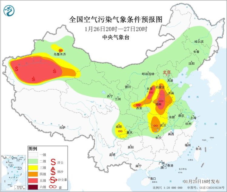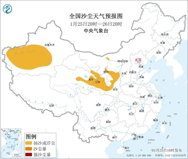 此外,25昼夜间至26日,新疆南部、青海东北部、内蒙古西部、甘肃中东部、宁夏、陕西中北部等地的部分地区仍有扬沙或浮尘天气。