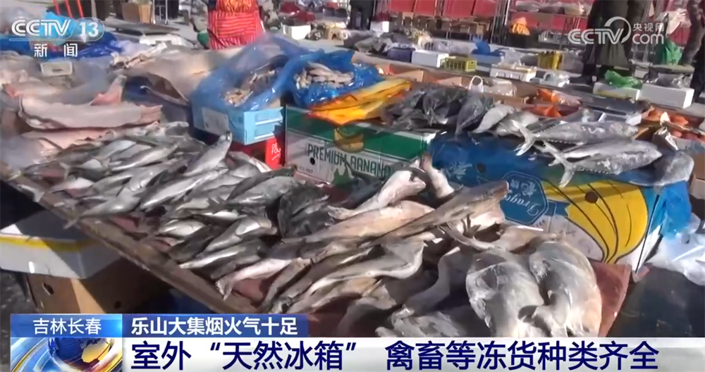 接着往里走,这里等于东北性情完全的生鲜冻货区了。长春的冬天,室外零下20多摄氏度,号称“自然大雪柜”。您看这冻鱼、冻豆包冻得老硬了,还有冻梨、冻柿子,都是东北东说念主节庆团圆必备的滋味,化透之后一口咬下去尽是汁水,清甜好吃。