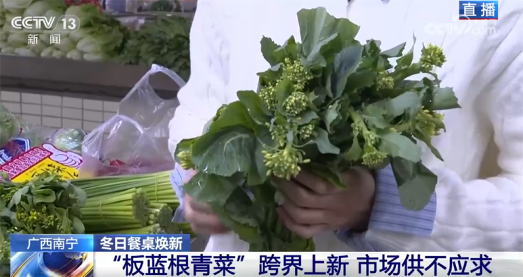除了这些家常蔬菜,还有一些不相同的。您看这个是不是和菜心长得很像?关于它的名字,大众可能有些生分,它叫作板蓝根青菜,不外并不是咱们熟知的药材板蓝根,而是过程板蓝根和油菜杂交而成的新式蔬菜,在2025年头度大边界上市。店主先容,它的口感莫得板蓝根的苦涩,拔帜树帜的是一股脆甜。它对烹调手法条目不高,清炒或涮煮齐不错,是近期阛阓上相比热销的新品。板蓝根青菜耐寒性强,如今广西玉林等地新引进良种进行汲引,阛阓供不应求。
