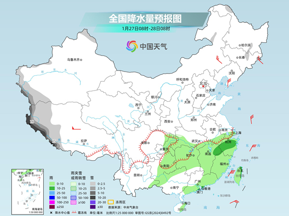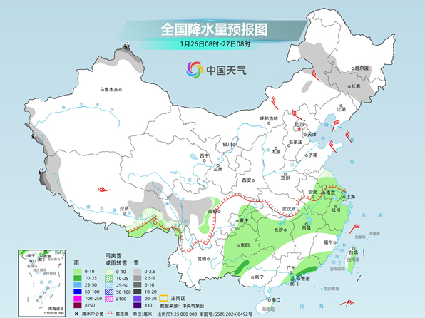 在这两股冷空气的影响下,今起至下周,我国雨雪天气发展增加,其中25日至27日,华北、东北地区南部、黄淮北部等地将有小到中雪,河南南部、湖北北部等局地有冻雨。