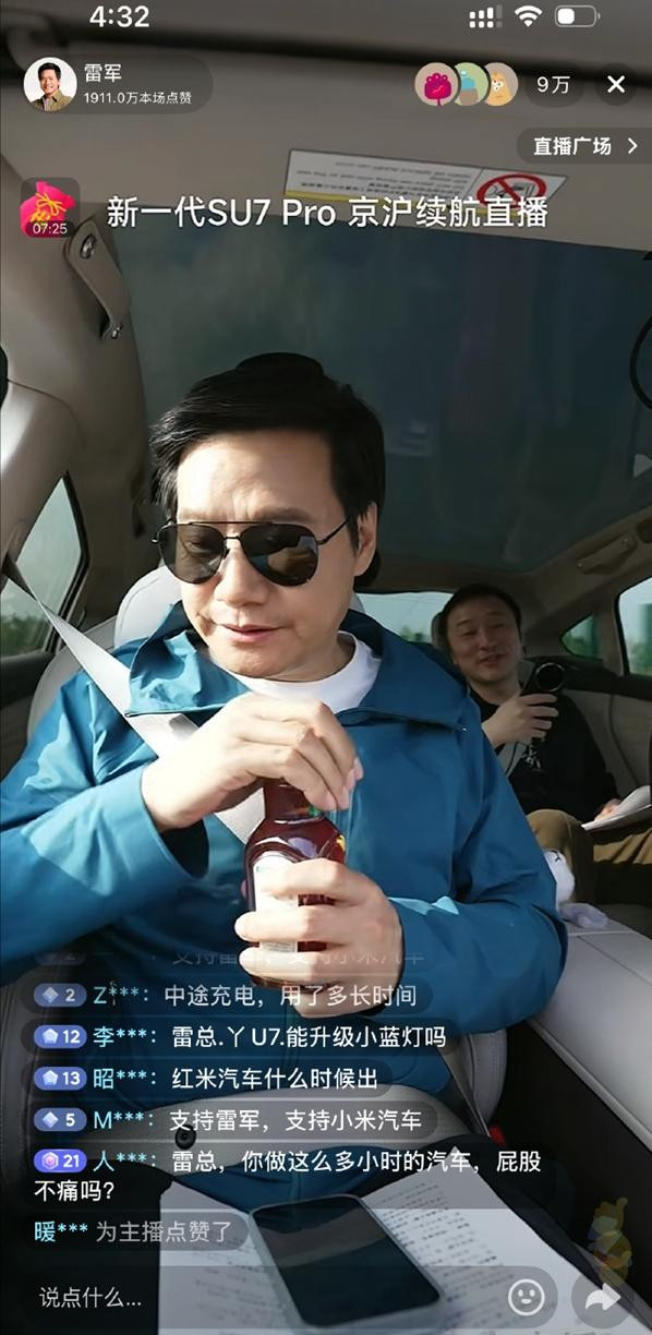 一个二三十明年的年青东说念主,这样坐车15小时,都是腰酸背痛的,雷军这种千亿总裁,还有56岁明白,窝在车里,给你直播15小时,你说难不难?
