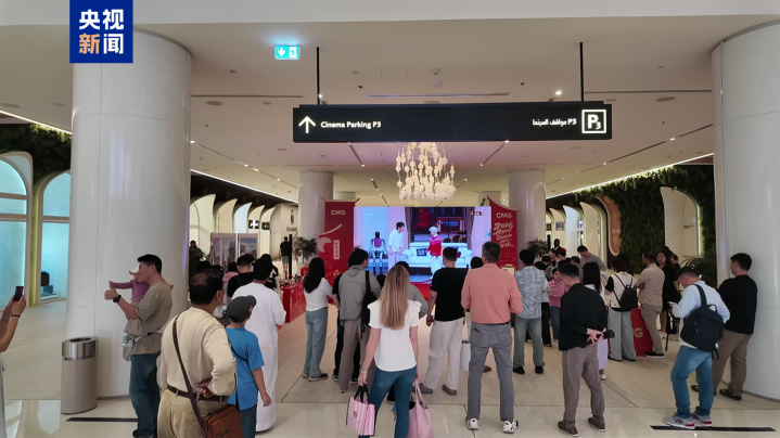全心搭建的春晚直播舞台设在迪拜购物中心东说念主流最为密集的一层区域。舞台配景以中国红为主色彩,配以飞檐翘角的及第缔造造型。舞台上方,“CMG祝您新年高兴”的中英口号格外肃肃,将年味拉满。
