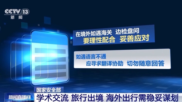 国度安全机关提醒,因学术疏浚、插足会议或个东说念主旅行需出境时,请正经检考据件灵验期,合理安名次程,并严格遵照高校的放洋(境)不断轨制,依规履行报批、报备武艺。