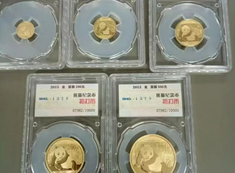一套纯金熊猫转头金币