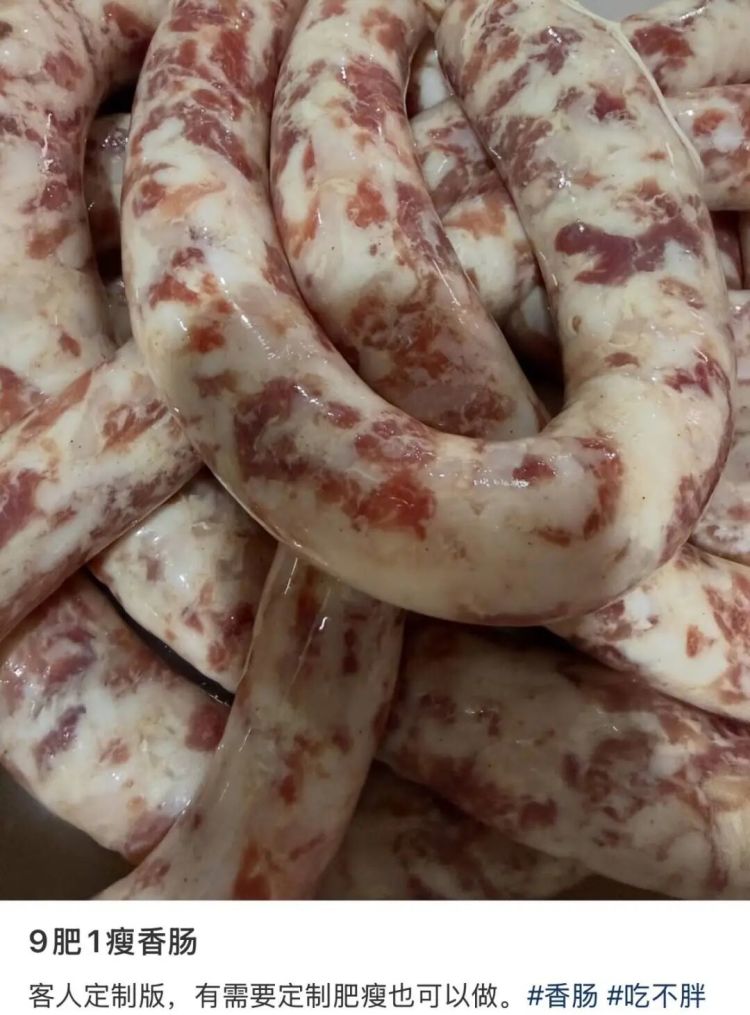 此外,极目新闻记者在外交平台发现,一位安徽网友发布了腊肠定制告白,表明可接管“九肥一瘦”规格的订单,并称“有需要定制肥瘦比例也不错制作”。下方有网友驳倒“这我可爱吃”。极目新闻记者盘考得知,该款腊肠为定制款,需15至20天能力发货,“太肥了,吃的东说念主少,有东说念主订我才会灌”。