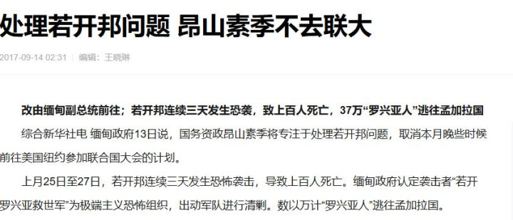 《王毅先容中方在罗兴亚东说念主问题上态度》,新华网